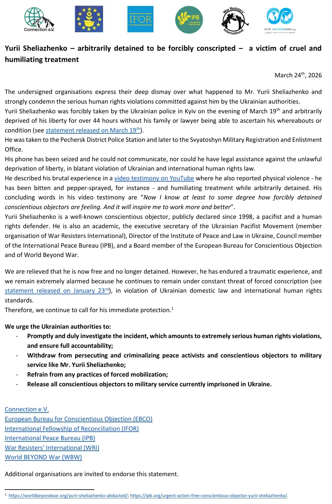 wir möchten Euch auf diesem Weg bitten, Euch an der Unterstützung für Yurii Sheliazhenko aktiv zu beteiligen.